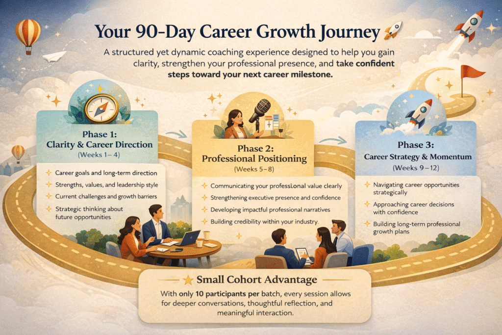 This program is designed as an intensive group coaching experience focused on career clarity, leadership positioning, and strategic professional growth.